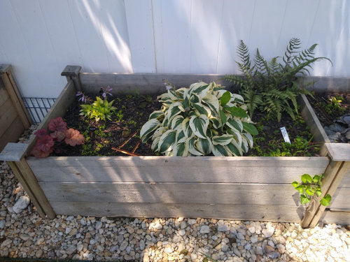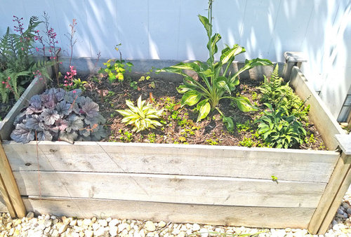 The shady side of my yard - heuchies, hostas, ferns, oh my!