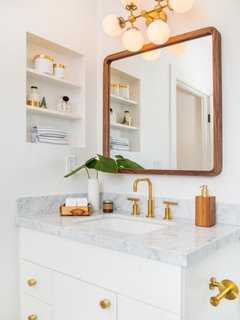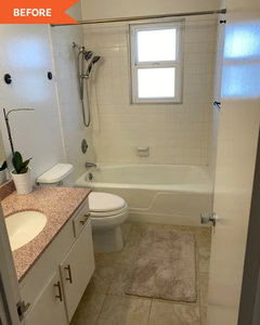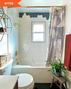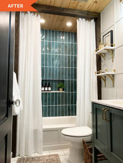 BATHROOM MAKEOVERSBathroom of the Week: Warm Organic Look in Green, White and Wood