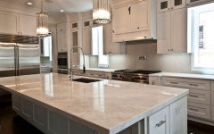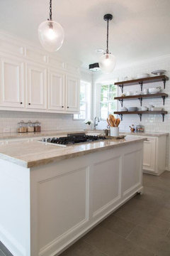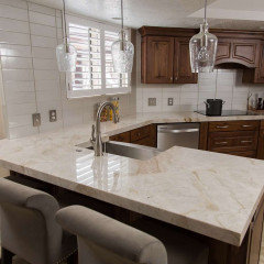 See how you can update a kitchen with new countertops, light fixtures, paint and hardware
