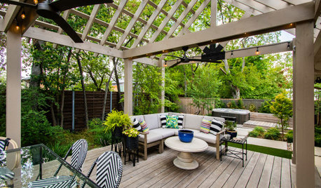 A vaulted pergola and a cleverly designed patio create a welcoming backyard for a Dallas couple