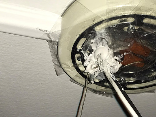 Sealed up ceiling light opening & electrical box: safe or redo?
