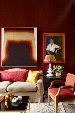 A designer aims for comfortable luxury as she decorates her home with rich wall colors, family antiques, vintage pieces and travel finds