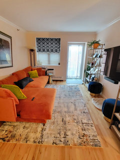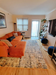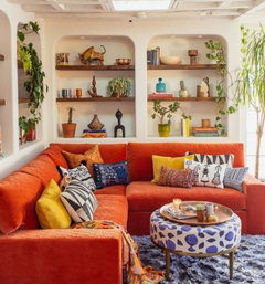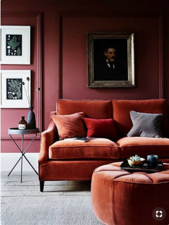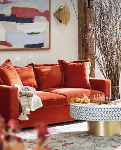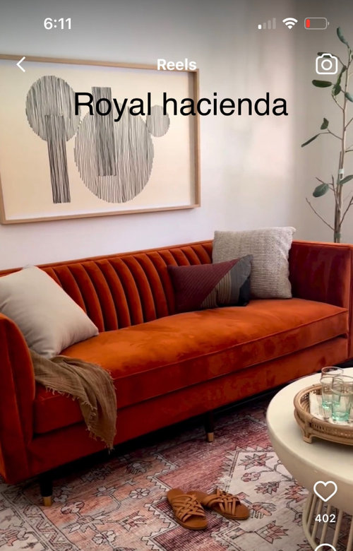 I’m trying to decide what wall color &rug goes w/ orange velvet couch