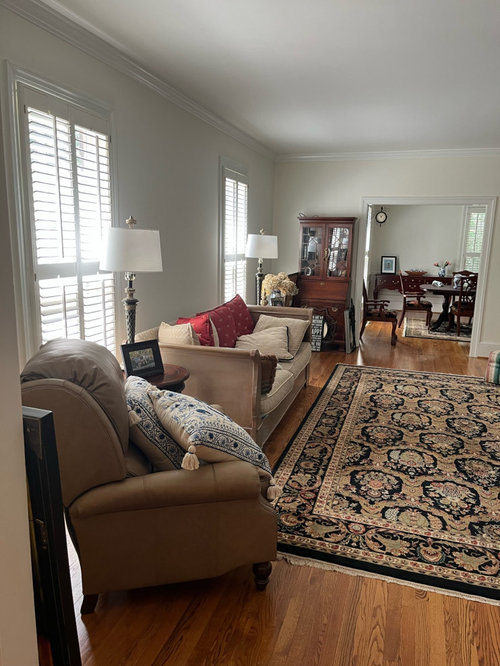 Smaller, more proportionally fitting furniture, a cooler paint color and better window treatments help bring life to a limiting layout