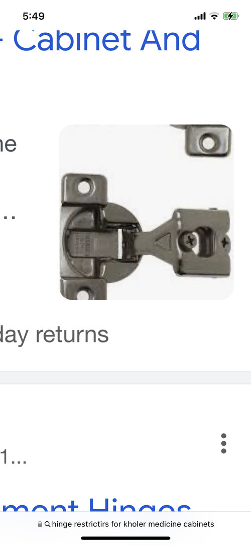 Hinge restrictors for Kohler, medicine cabinet help