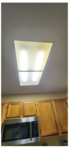 Original Author2 years agoBeth- The countertops are granite. They cost quite a bit back when we bought them. The yellow paint was there long before the countertops and floors. I agree the yellow needs to go and lighting need to be done first. I never knew how to go about it. This is the light fixture in the ceiling. I never really liked it. It looks like it should be in a garage. The other lighting is a dome light over the sink and a hang down pendant light on a chain over the kitchen table. Thank you for your detailed response. Arcy- I was getting that way:( Thank you