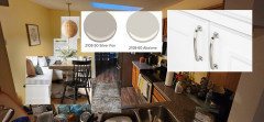 So, before you start ANYTHING, upgrade your lighting to some recessed cans (if you can) with LED bulbs in the 3500-4000K temp (no higher, no lower)Then paint out those yellow walls to something in the color range I've shown, or a nice neutral white.
