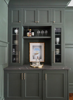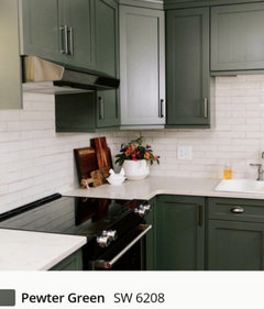 @MG I noticed Sherwin Williams posted a picture of kitchen cabinets painted Pewter Green. The room has a light greige wall color too.