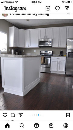 Evolution of STyle has some beautiful cabinet makeovers. head over to her page or blog.This one is highlighting the upgraded island trim work, but you can see these cabs are very similar to yours, as are the countertops. also notice the hardware placement. you could use some too (pulls not knobs though)