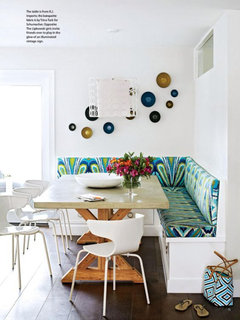 --Also with savings, get new dining table and chairs which, along with the pendant, will brighten the space. Add a lovely large food art work on the wall where you have a small one.