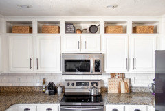 --Yes, do a massive decluttering and reorganizing so you don't have a big trash can in the kitchen but a pull-out below. Get paper towels off countertops and below. Take all stuff off fridge.