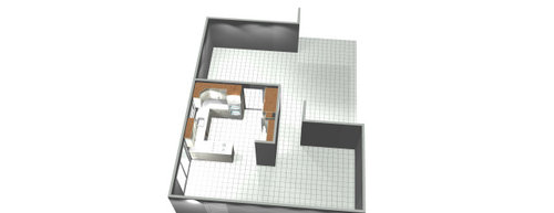 You can get more living space — without losing functionality — by grouping your appliances and cabinets on a single wall