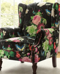 Pair two contrasting fabrics on an upholstered chair to bring edge and an element of the unexpected to your interior decorating