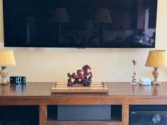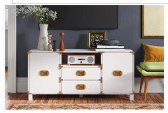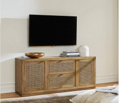 Under the TV, on the credenza...
