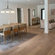 An inviting area for casual family meals with his-and-her desks offers beauty and functionality