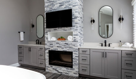 BATHROOM DESIGNBathroom of the Week: A Smarter Layout With a TV and Fireplace