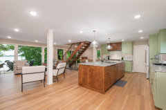 A designer opens up a cramped family kitchen with more natural light, a larger island and a striking dark-stained bar