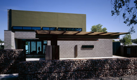 Concrete blocks on this modern Arizona home's exterior give way to wood, metal and colored glass indoors