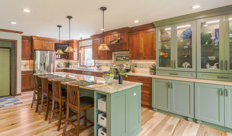KITCHEN MAKEOVERSKitchen of the Week: Blue-Green Cabinets With Rustic Wood Details