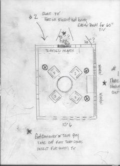 TV seating for 4-5 in this tiny walk-thru living room? Help!
