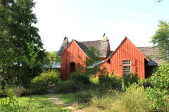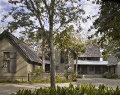 Guest cabins, a barn for parties and a spacious communal bathroom make a couple's coastal home an entertaining dream