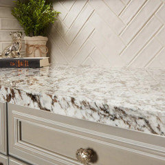 See how you can update a kitchen with new countertops, light fixtures, paint and hardware