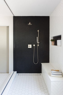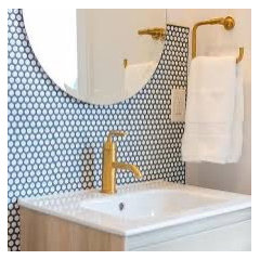 See how tile-edging trim adds graphic style to five bathrooms and kitchens