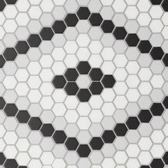 Add movement, definition and interest to a humble bathroom floor by sidestepping uniform tile in favor of an unusual design