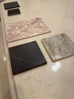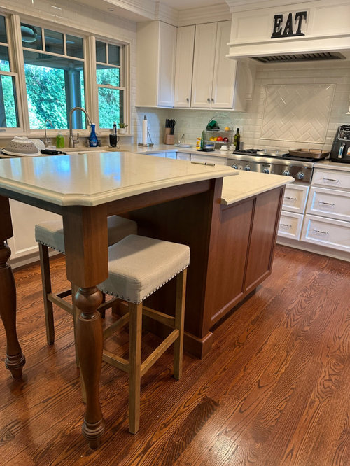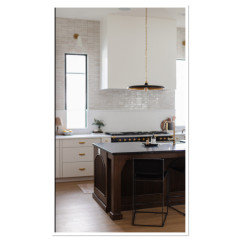 Contrast or complement textures, tones and more by using a mix of materials for countertops and island tops