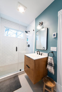 BATHROOM MAKEOVERSRoom of the Day: Walnut Vanity Warms Up a Master Bathroom