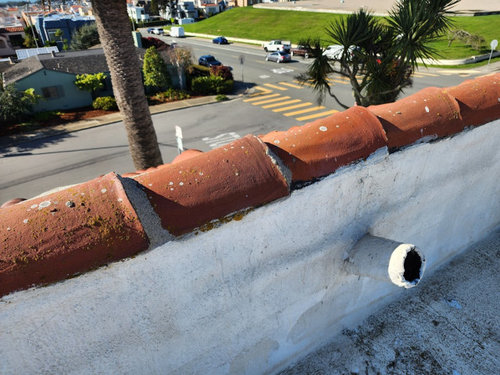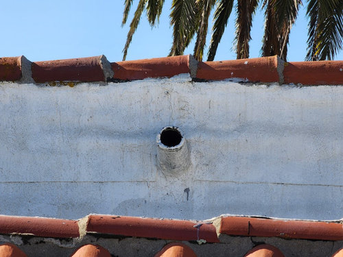 What is this? Weird sticking out Spanish Clay Vent w angle on roof?