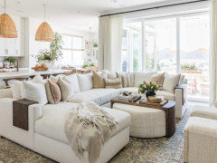 With neutral hues and ocean views, this Malibu home offers a stunning backdrop for gatherings of family and friends