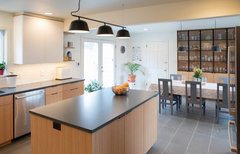 New cabinets and honed black granite countertops are among the stars of this Boston kitchen renovation