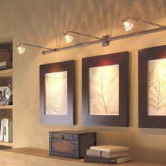 Turn a dull spot into your own personal art gallery with shallow shelves displaying artwork you can swap out on a whim