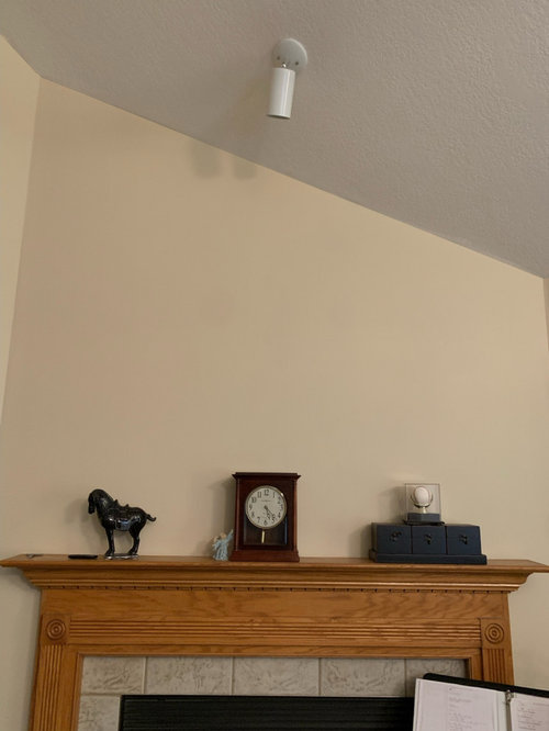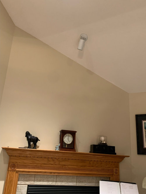 HELP - Lighting on sloped ceiling for above fireplace on