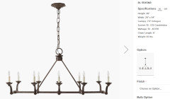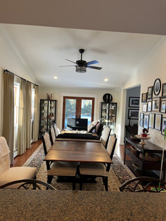 The main reason for this post has to do with the updating the adjoining Dining Room and Kitchen. Specifically, chandelier and cabinets that are from before we extended our DR.1) Chandelier choices: I am selecting a Chandelier over my DR table which is 42” x 130” with the leaves. If no leaves, table is 90” long. 90% of time leaves are on the table. I have a sloped ceiling that starts at approximately 8’ and tops out at 12’ . These are my top 2 choices so far. Am I on the right track considering other elements in the adjoining rooms?