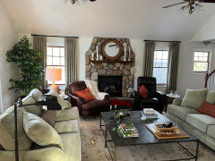 Now that I have bored you,and whomever may be following? You look at how those dollars are allocated above.....and you note how much is in the upholstered pieces. Yeah......for all the reasons we know. A pain as you realize, to replace, and to get good quality. ( I highly recommend spring down cushioning ala Hickory chair ) vs. some brick bat foam. )Last tip? Put the LOWER arm, in the chairs near fire: ) ie 24" and no more. A chair side at near that same height, is easy reach and the well proportioned Cocktail is the easy reach for the couches, with p.l.e.n.t.y of room snacks and display both.