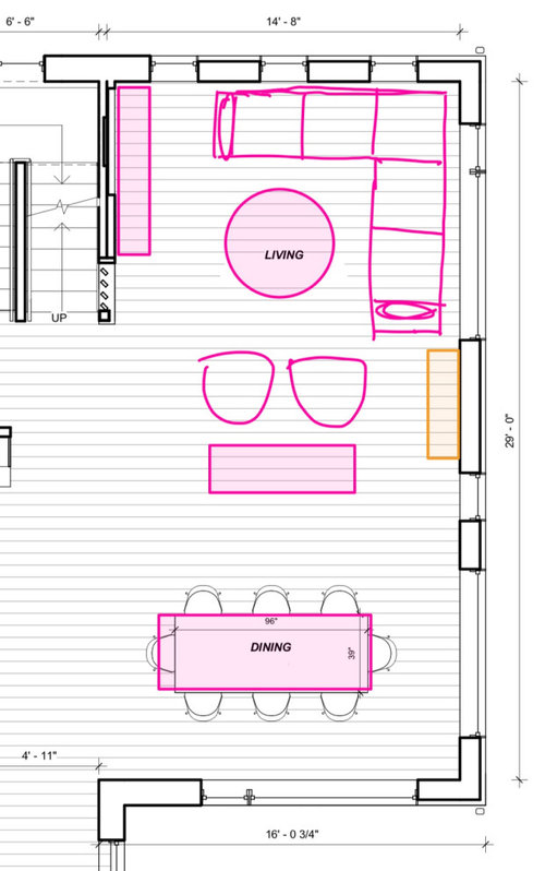 What to do with wall section between large windows in living/dining?