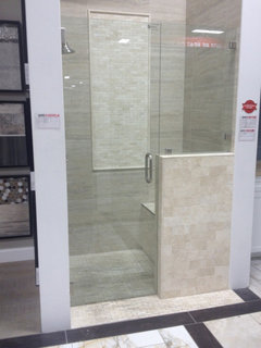 Depending on how much glass versus tile/wall you want this shower size with a seat is quite comfortable.