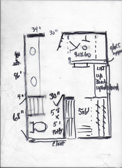 I was given the suggestion to remove the angled wall & replace it with the straight wall and that seemed doable within our budget & timeframe, so I thought I'd see if others thought it was workable. Seems questionable how well it would work, but could possibly do with some tweaking.