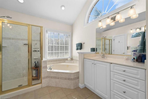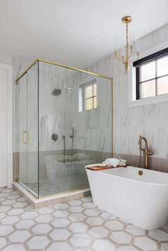 See how removing bathtubs allowed designers to add larger showers and a more open feel to these renovated bathrooms