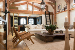 A Spanish-style family room with wonderful architectural features gets new furniture tailored to its style and size