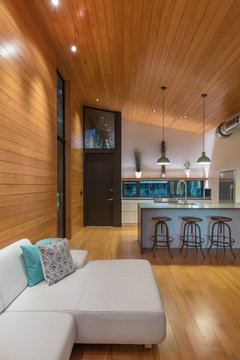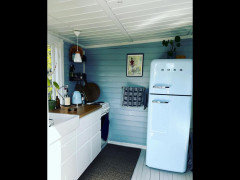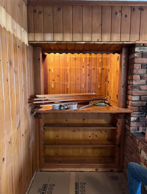 Plywood storage units add modern-day convenience, while retro colors and laminates stay true to the home’s era