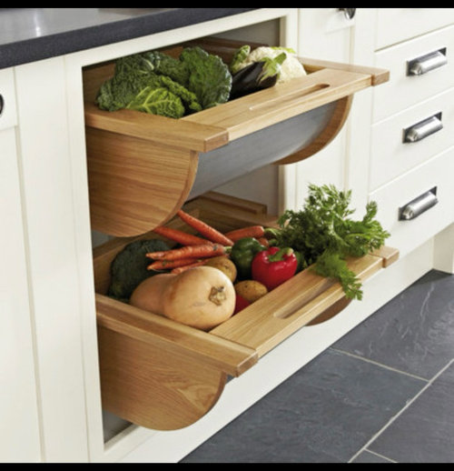 Pull out vegetable bin drawers in kitchen cabinet- anyone have them?