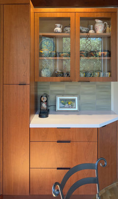 Custom storage, light woods and a cool palette create an easygoing space for a California family