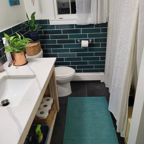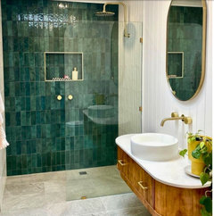 BATHROOM MAKEOVERSBathroom of the Week: Terra-Cotta Tile Warms a Primary Bathroom