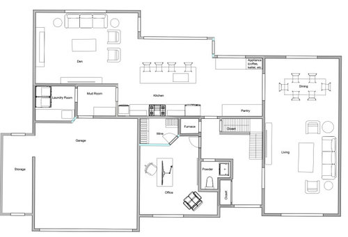 Floorplan tradeoffs in kitchen and office area for wine storage