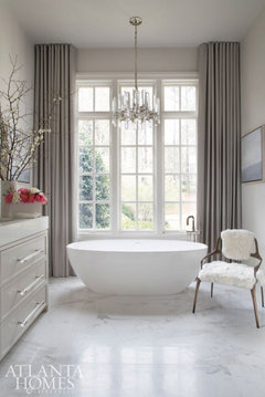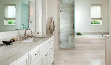 BATHROOM MAKEOVERSMarble Tile Brings Spa-Like Luxury to a Master Bath