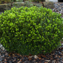 Sculptural, diminutive and low maintenance, Mr. Bowling Ball arborvitae works hard in small spaces