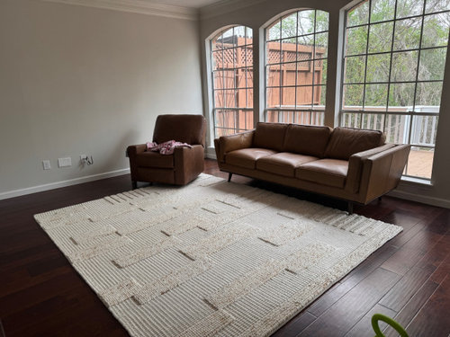 Rough jute and soft shag, eye-popping turquoise amid neutrals ... this room’s pairings make each element stand out